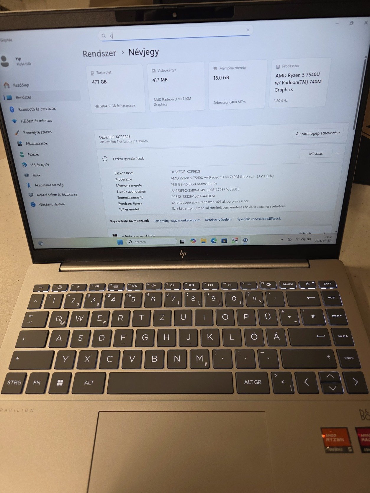Eladó egy szinte új állapotú, rendkívül gyors és elegáns HP Pavilion Plus 14 laptop.